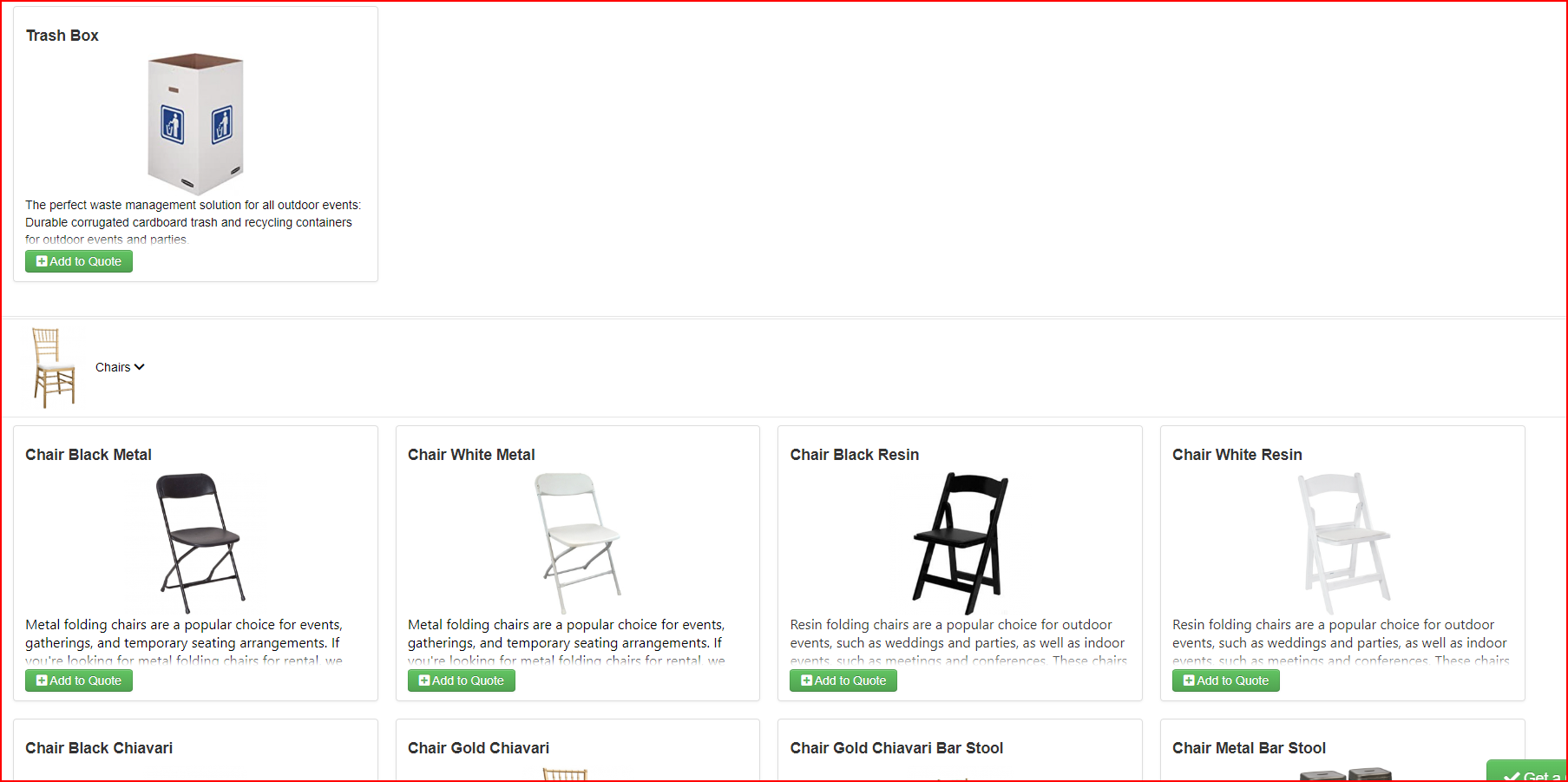 I just had a customer call me and then I was able to replicate the same issue if you go to our website fill in the online quote form when you have your option choices of what equipment you would like to rent typically you click on the item type example tents tables chairs what have you in it drops down and shows all of the items under the category well catering does not drop down and neither does chairs but all the rest of them does so I'm confused as to why those two are not dropping down today