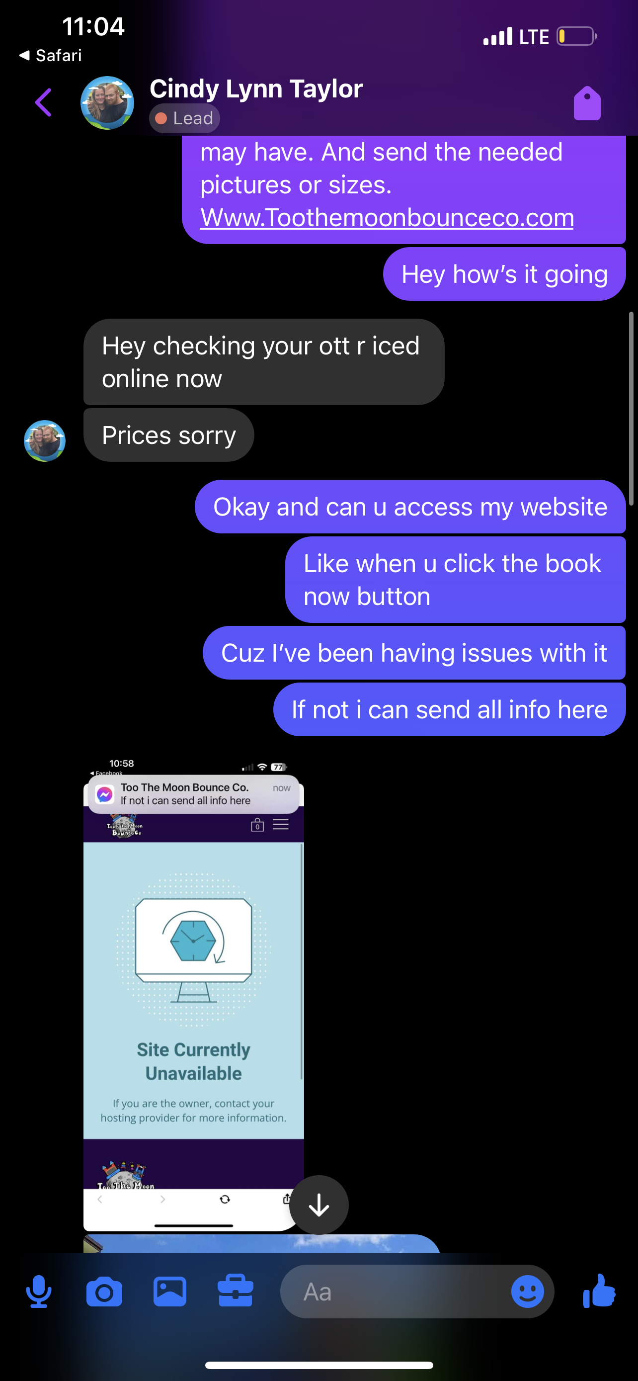I just did a test on your website I clicked the book now button received my quote then clicked book now and it was working as it should, please see lead 18550335