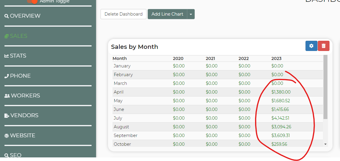 Ho do I create a Sales Report column by month, I know it was there before but I no longer see it. I want to be able to see a bar or amount by month