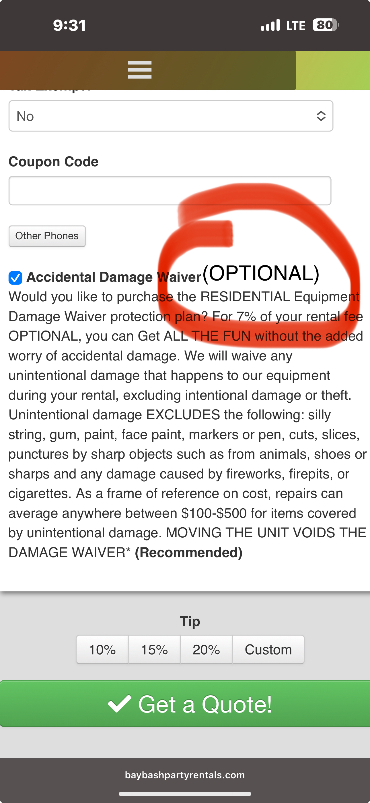 Can I please have this added to my damage waiver and also have it where it automatically checks the damage waiver and adds it to the cart and final price and the customer has to uncheck it if they decide they don’t want it.
