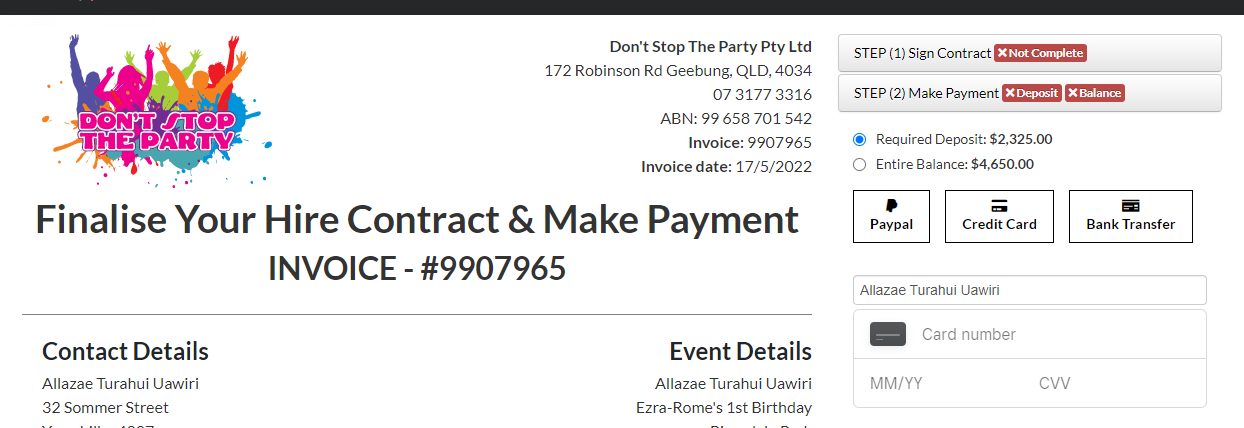 Note also that the Square integration doesn't work properly on mobile on the contract page.