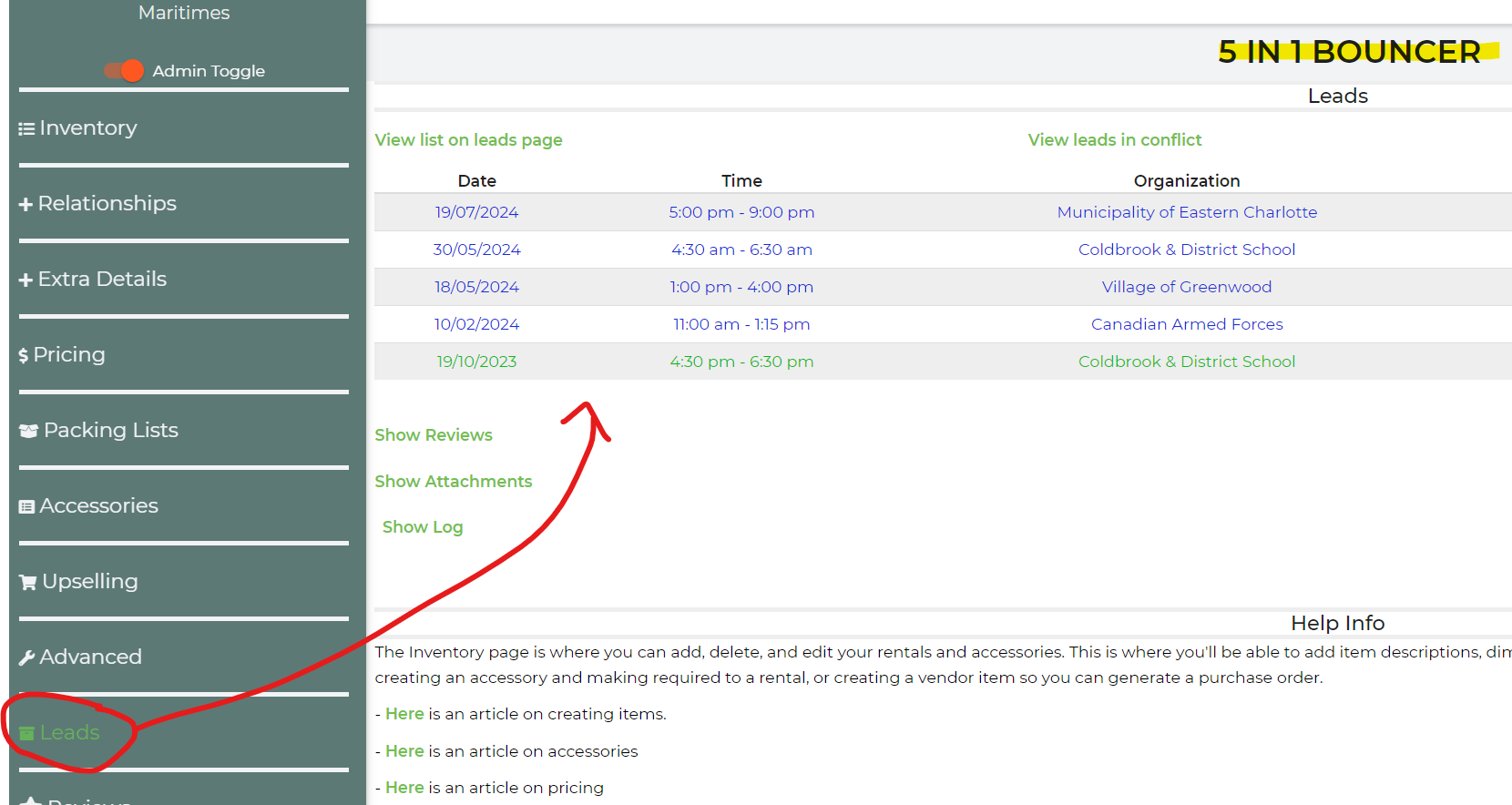 we just bought out all the inflatables from the company we've been working with for 5 years. We had IO team do what they needed to get all the other company info from his IO to ours. Now we have doubles of inventory items. Like for example Bubba bouncer, the other company has his leads with dates on hold and we have our leads. I am afraid to delete either in fear of losing the up coming rental dates.