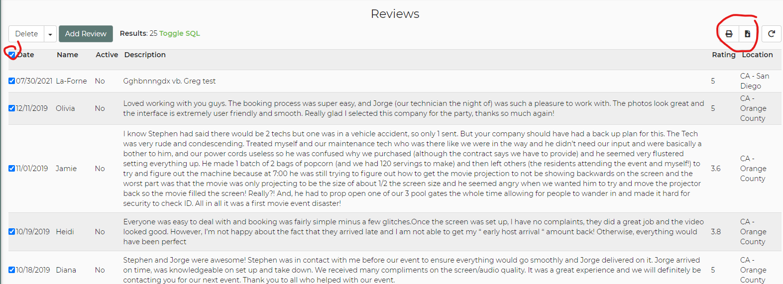 Is there any way to compile all the reviews we have received and export it as a csv/excel?