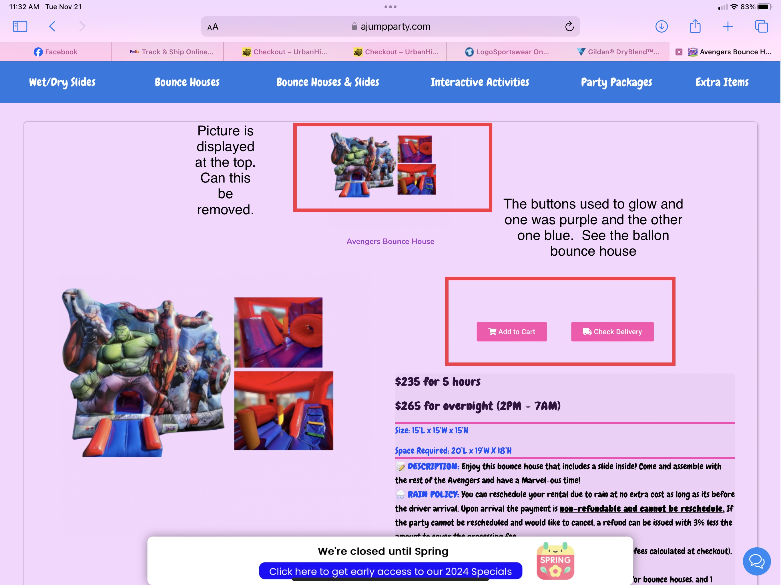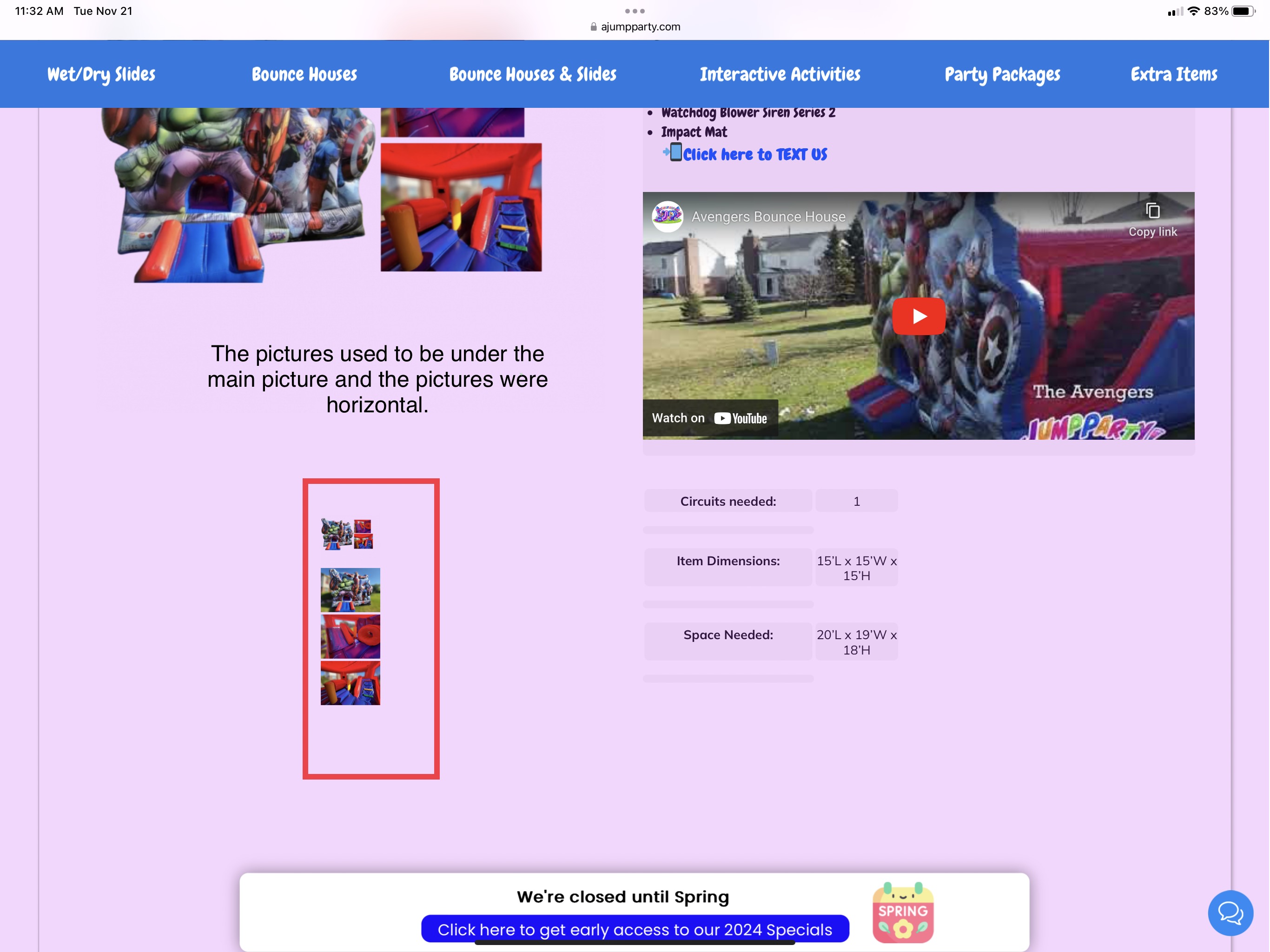 I noticed on my Avenger page the pictures are not displayed correctly. I’ve attached screenshots of the problem with a description of the problem. Thanks
