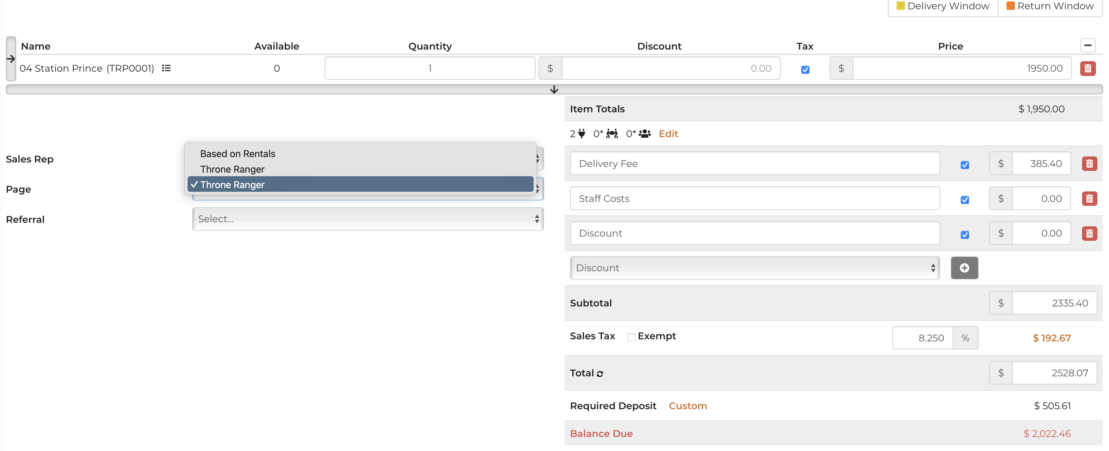 Based on rentals will only show if you have more than one active quote page but the customers chose specific items that show on that page. (this won't show in your case)