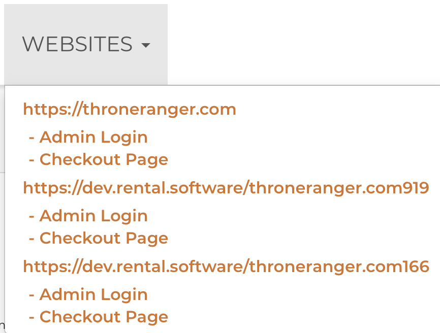 I took a screenshot of the website menu are the two listed at the bottom test sites and the top one (thronrager.com) the live one? Any issues in deleting the demo ones? I will need to confirm with Spider Development.