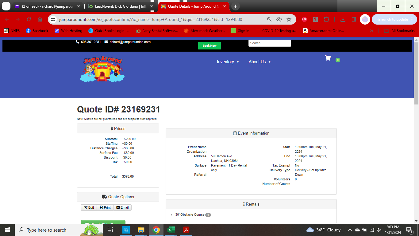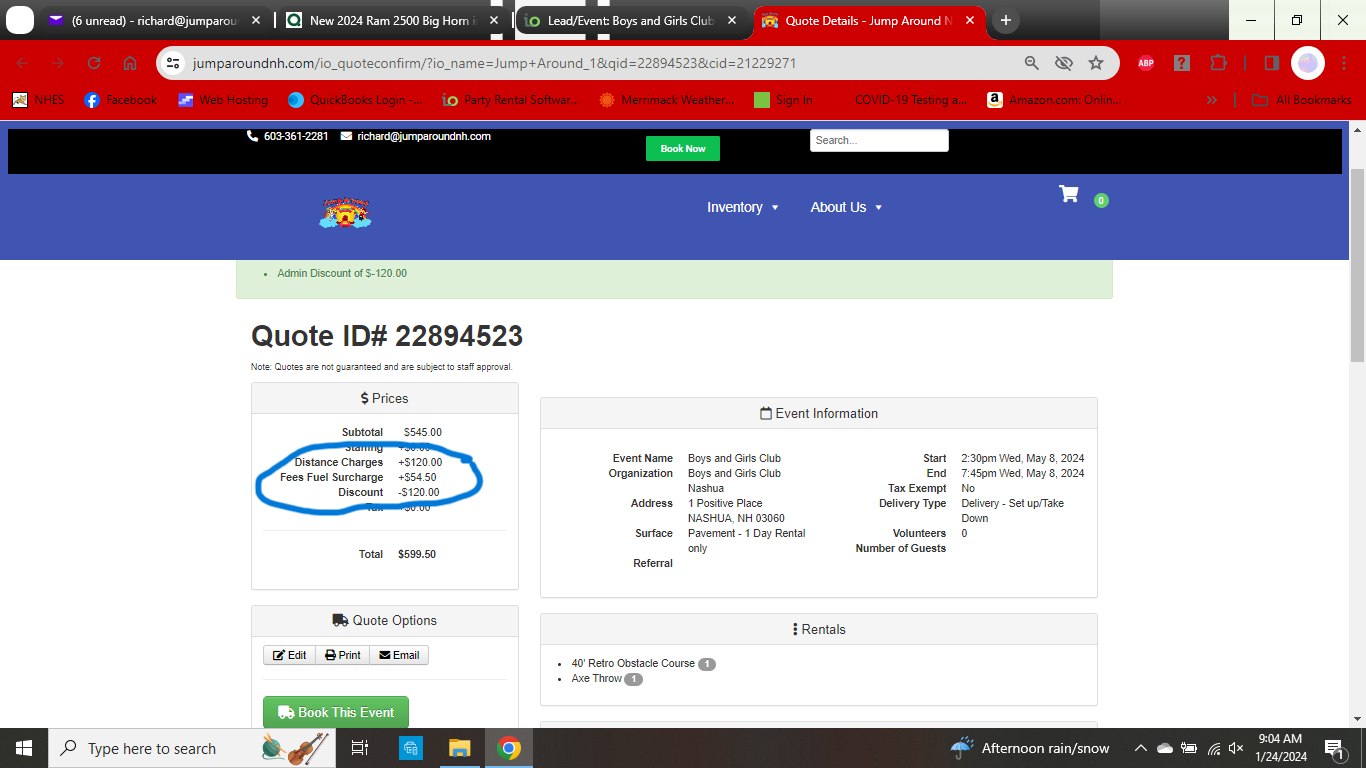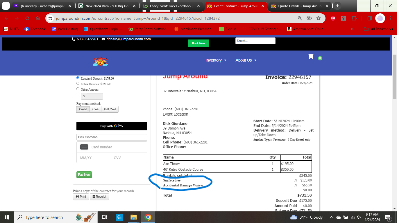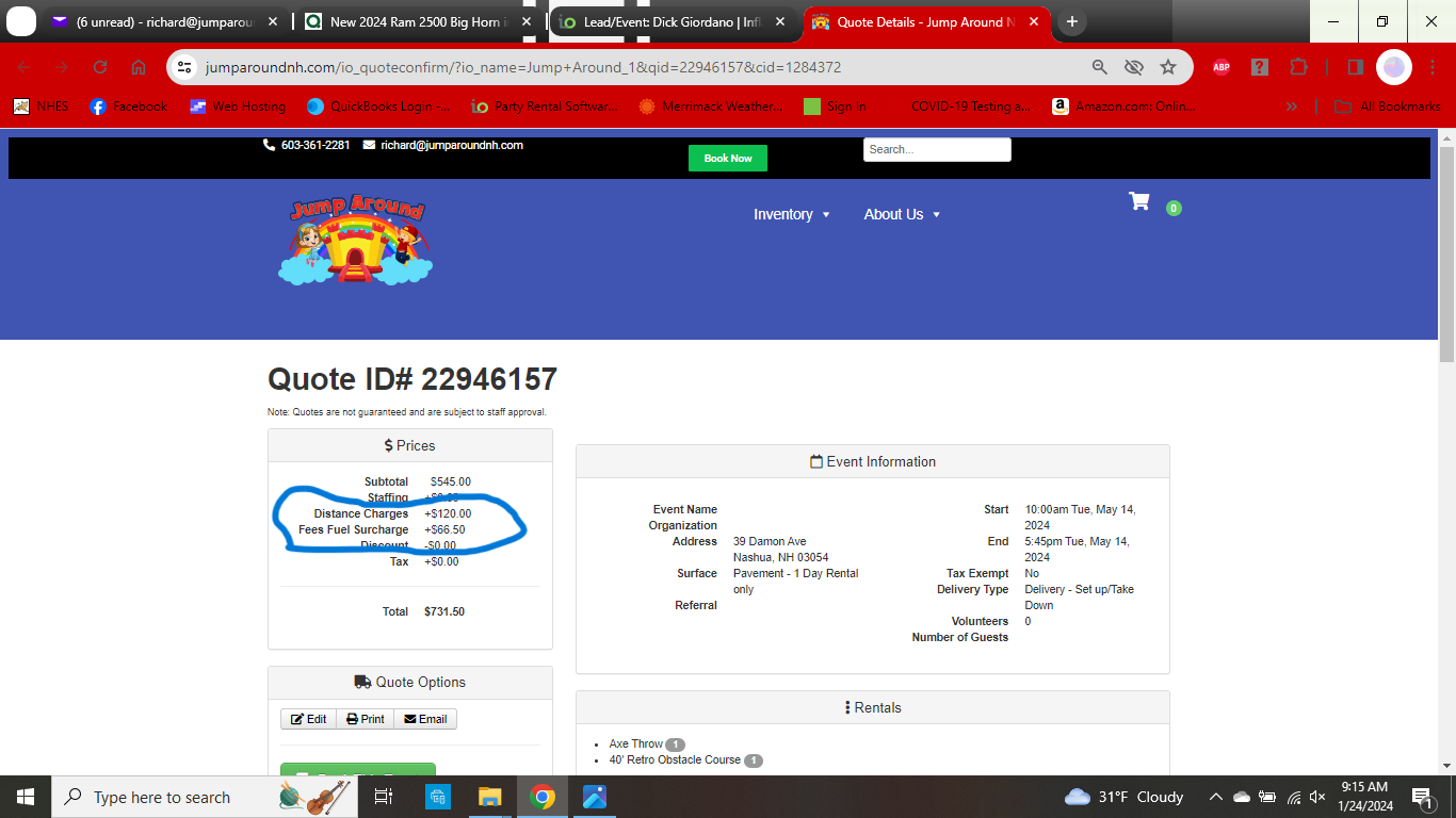 New Test lead I just did 23169231.. Now lists the Surface Fee as BOTH Distance Charges and Surface Fee. It only adds to the total once, so it Totals correctly, but that will be confusing... Also, why won't the Additional Damage Waiver Fee add to the quotes. I've done 2 tests today and neither would add.. After multiple saves and leaving and opening again and forcing a Total Recalculation.