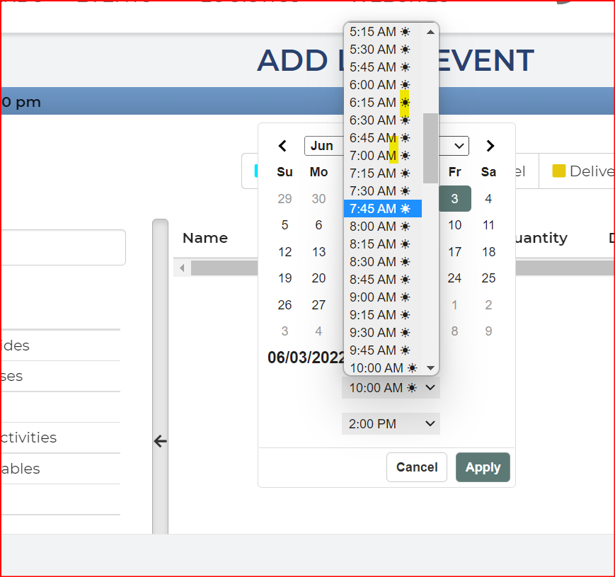 hello, I’m trying to enter an end time for the event date. I’ve entered a start time of 10 AM and I’m trying to enter an end time of 2 PM, however it’s greyed out. See screenshot.