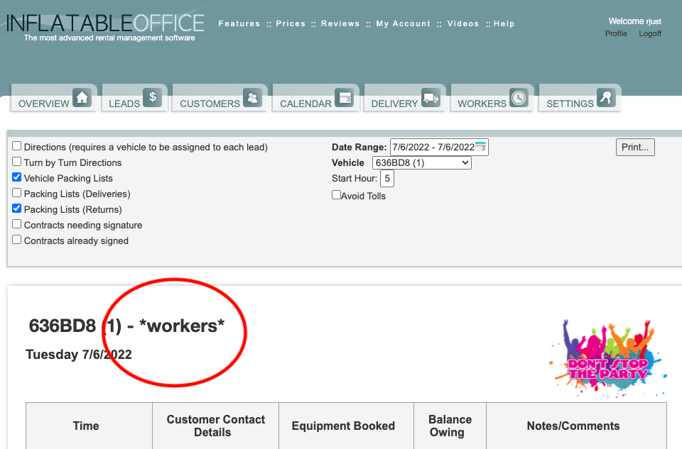 I'm trying to display the Worker's names on the Vehicle packing list using either *workers* or *workerlist* but it's not showing.