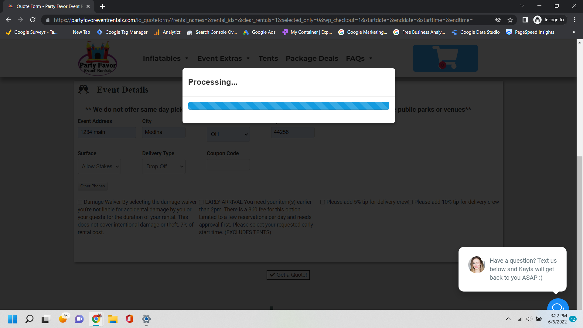 we have had several complaints that customers cant get quotes. the screen just keep's saying processing