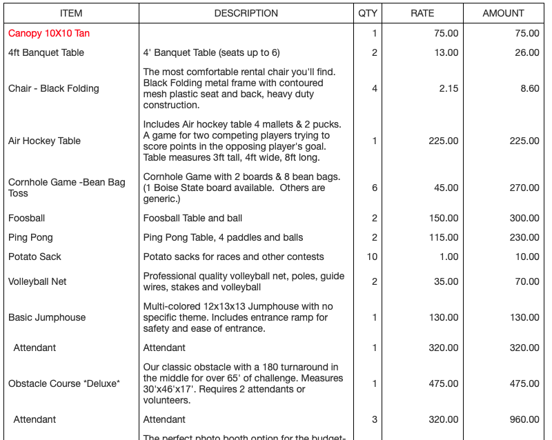 When you look at the items in the list and add them up, they should total $7125.75, not $8995.35. If you look at this lead in an invoice format, you can find 3 items listed that are not showing up on the main rental screen (screenshot below capturing the top of the invoice where the "hidden" items are). However, even adding those to the $7125.75 does not equal $8995.35. Again, we've gone around the issue and just created a whole other lead for this customer to overcome the problems, but we just wanted you to see the glitch/problem so that it doesn't become an issue for someone else. It may stem from the Save As Copy feature, but we've not seen this addition error before. Perhaps there is something more hidden that we're just not seeing in the rental screen, or the invoice screen, which is making it add up differently.