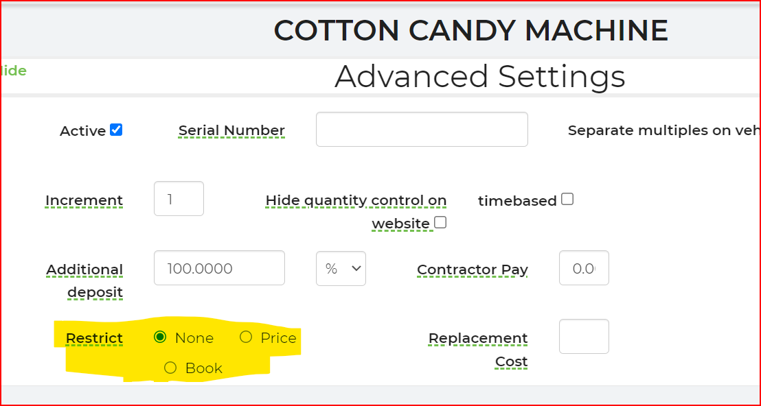 Is there a way we can change the "Must Precede Event By" to 3 days for only our sno cone and cotton candy machine?