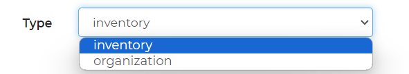 What is the difference between "organization" and "inventory" for the type field in the app templates?