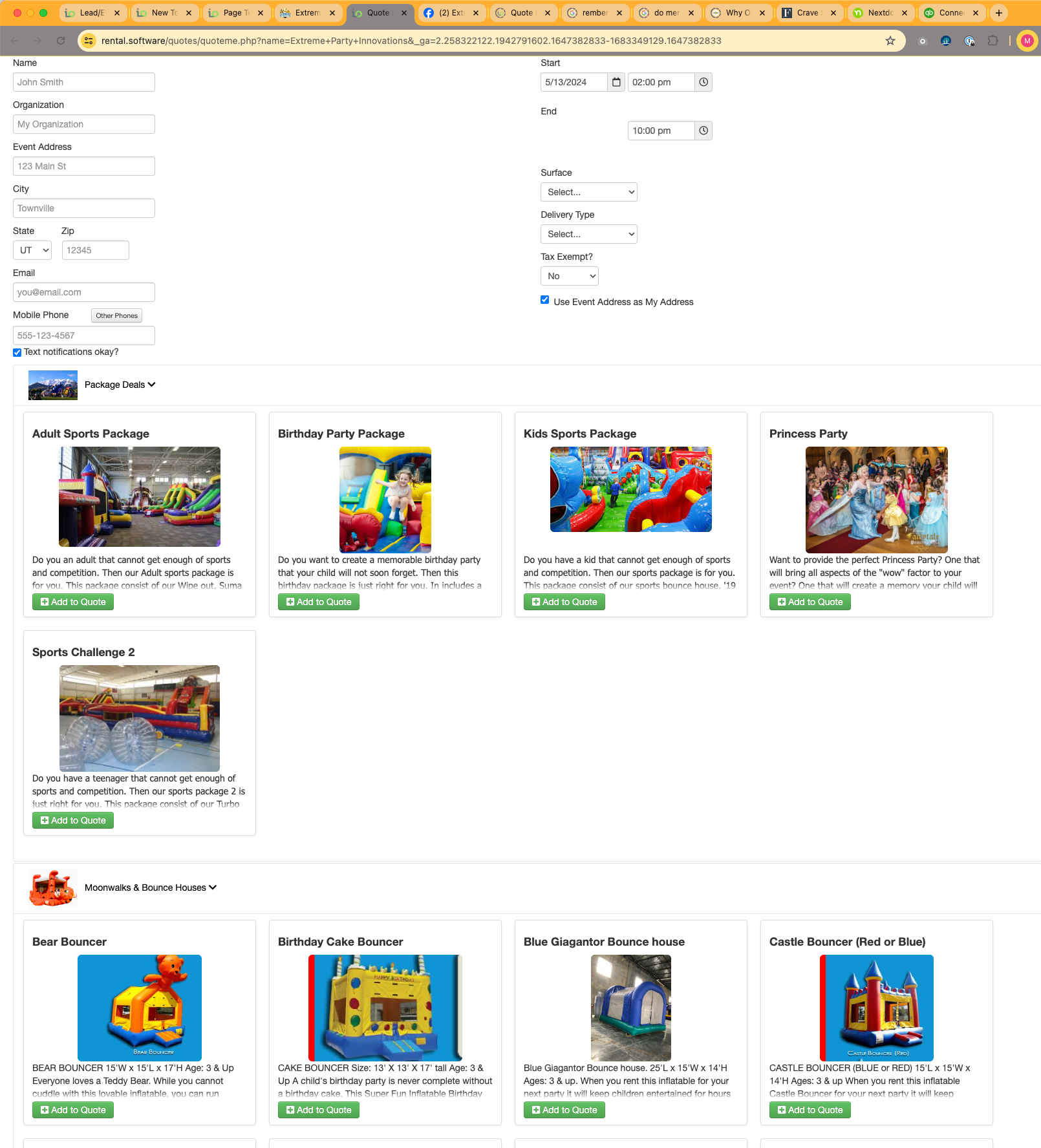 The screenshot of your quote form is pulling directly from IO (hence the rental.software URL and no other info on the page).