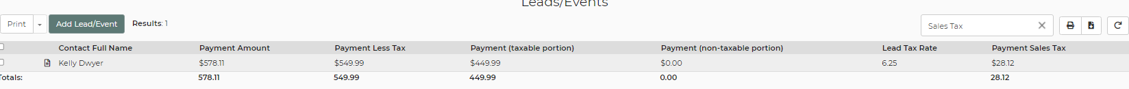 is there a way to make this report show total sales tax for lead not just for the payment they've made. for example in may i have lead # 22326613