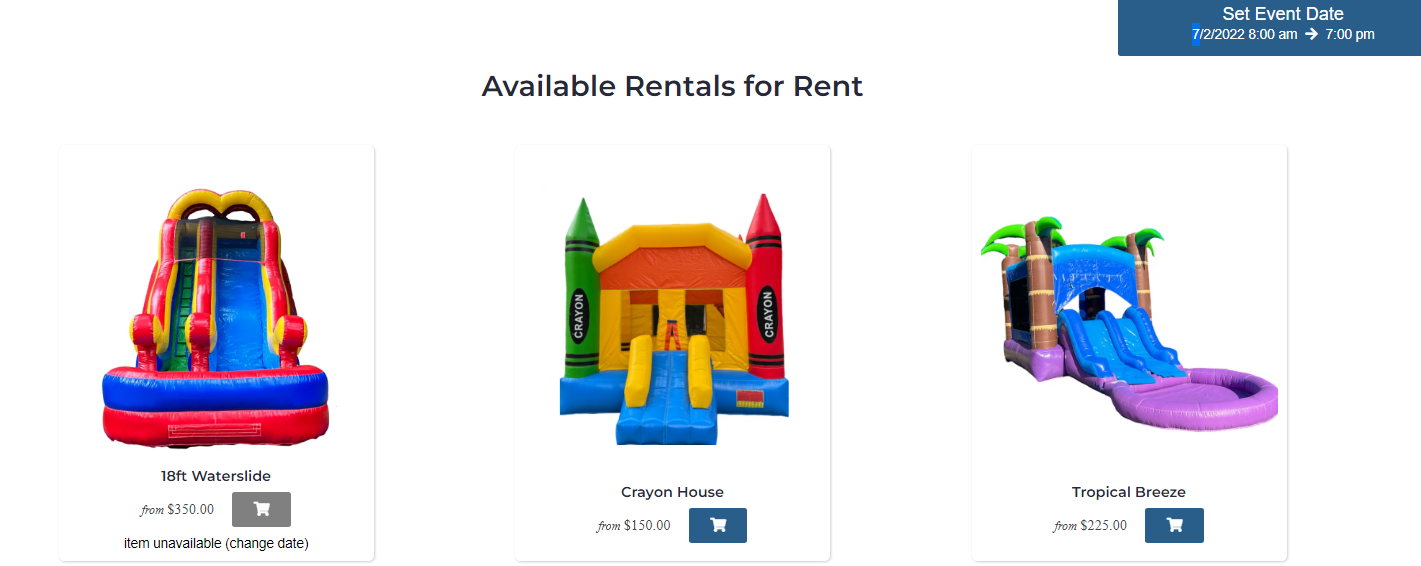 Please see attached, I have my date set as 7/2 and it shows the waterslide as unavailable? I have no bookings for this date. How can I change my settings to not show item unavailable?