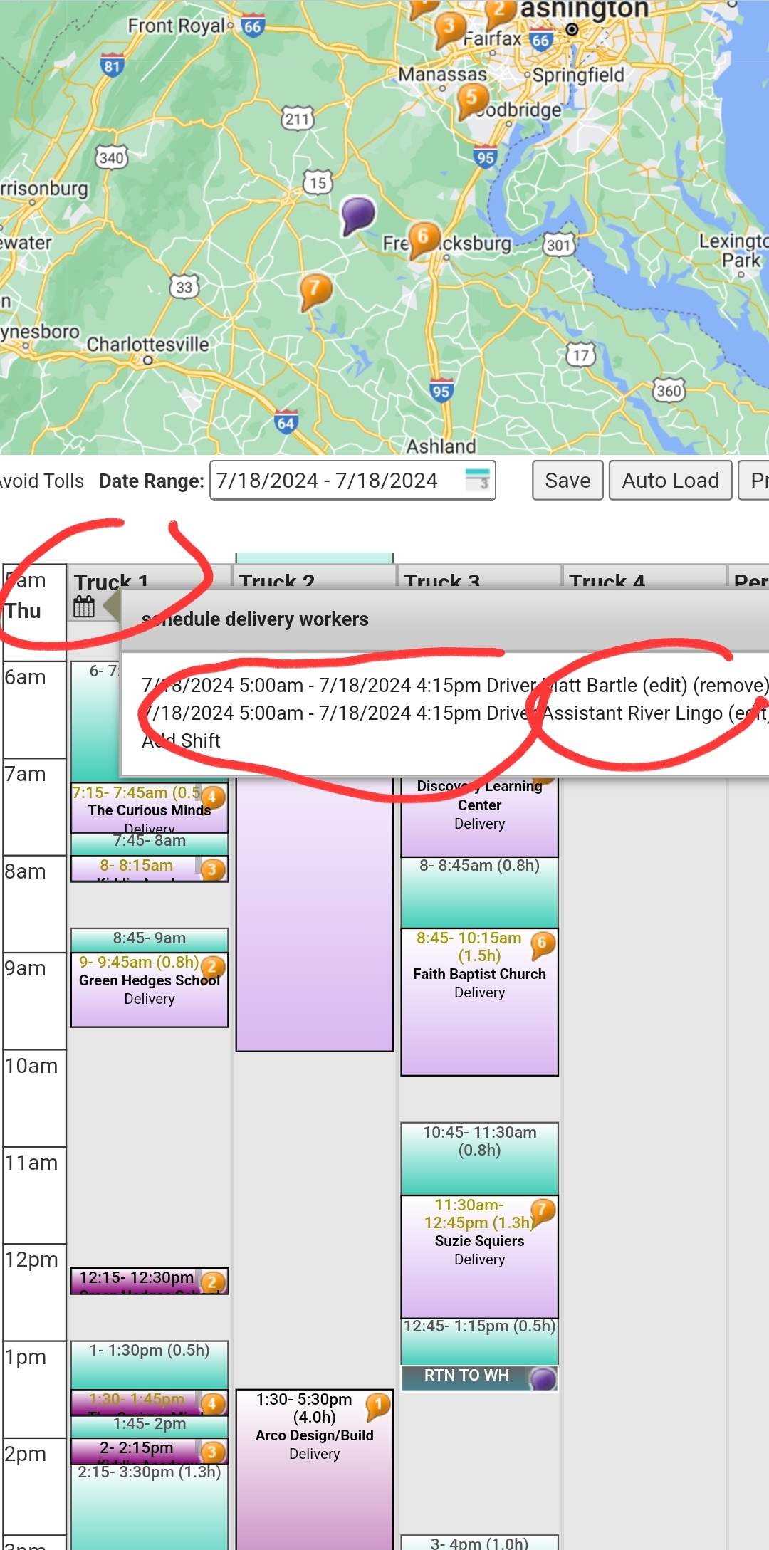 Several times we have edited the delivery planner schedule for an employee by changing the time and hitting save only to find out later that it has completely deleted a shift. This has caused workers to not show up to shifts we thought they were scheduled for. I am wondering if a few things could be done to prevent this. It appears that if you edit a time and it doesn't save it completely removes the schedule. It seems like it would be better if if left the original schedule rather than fully deleting it. Is it is possible to get an alert on screen that the shift has been deleted or an email or text or warning? For some reason the changes are not saving sometimes and there is no indication that it has not saved. This has happened twice this week