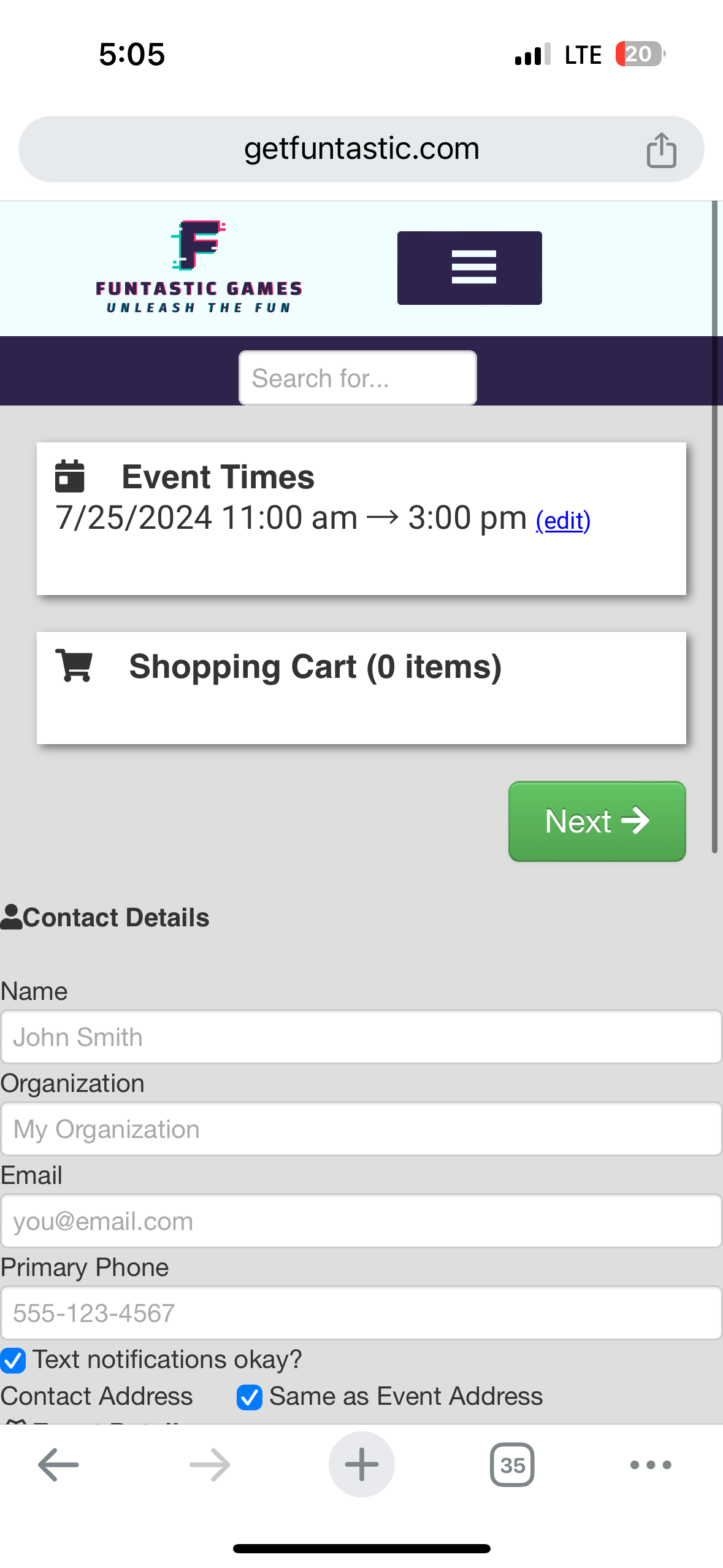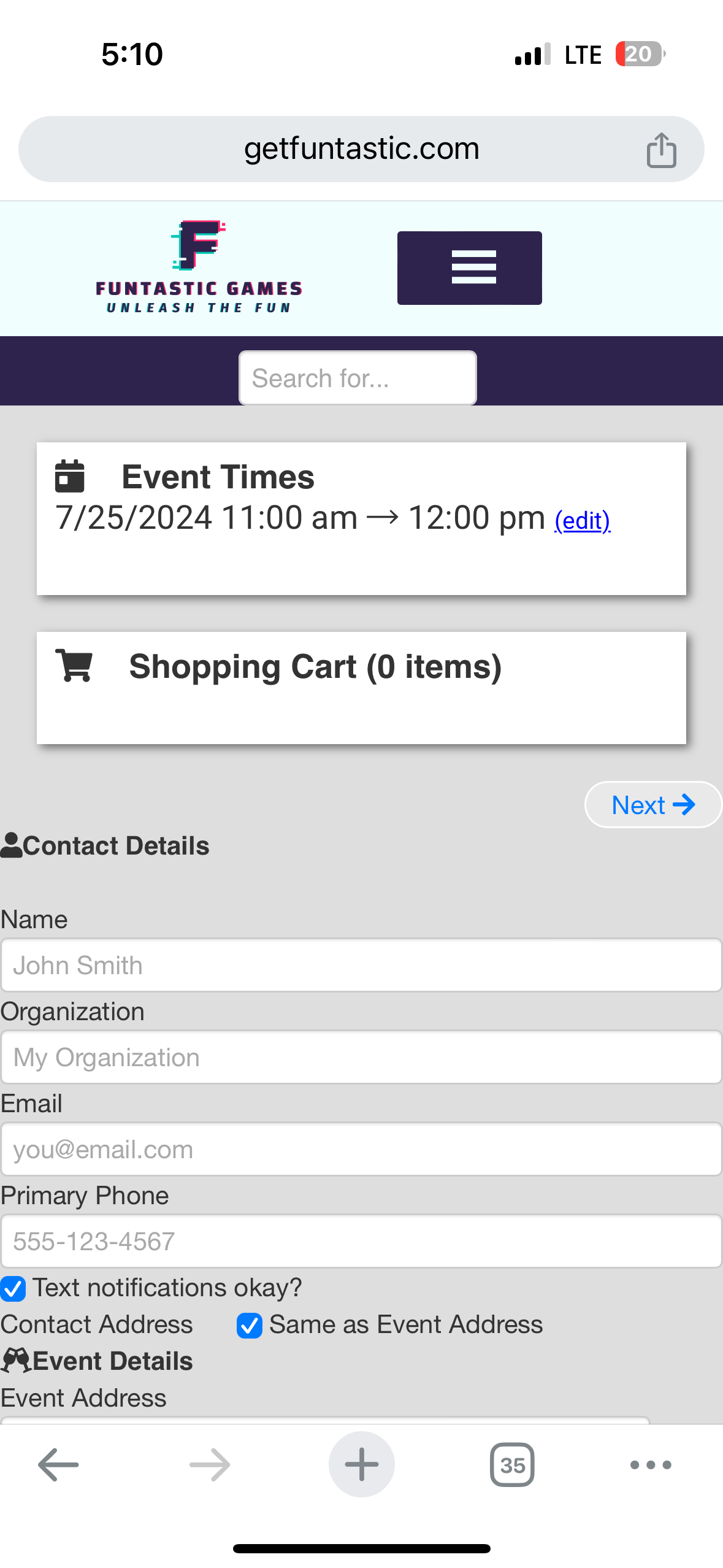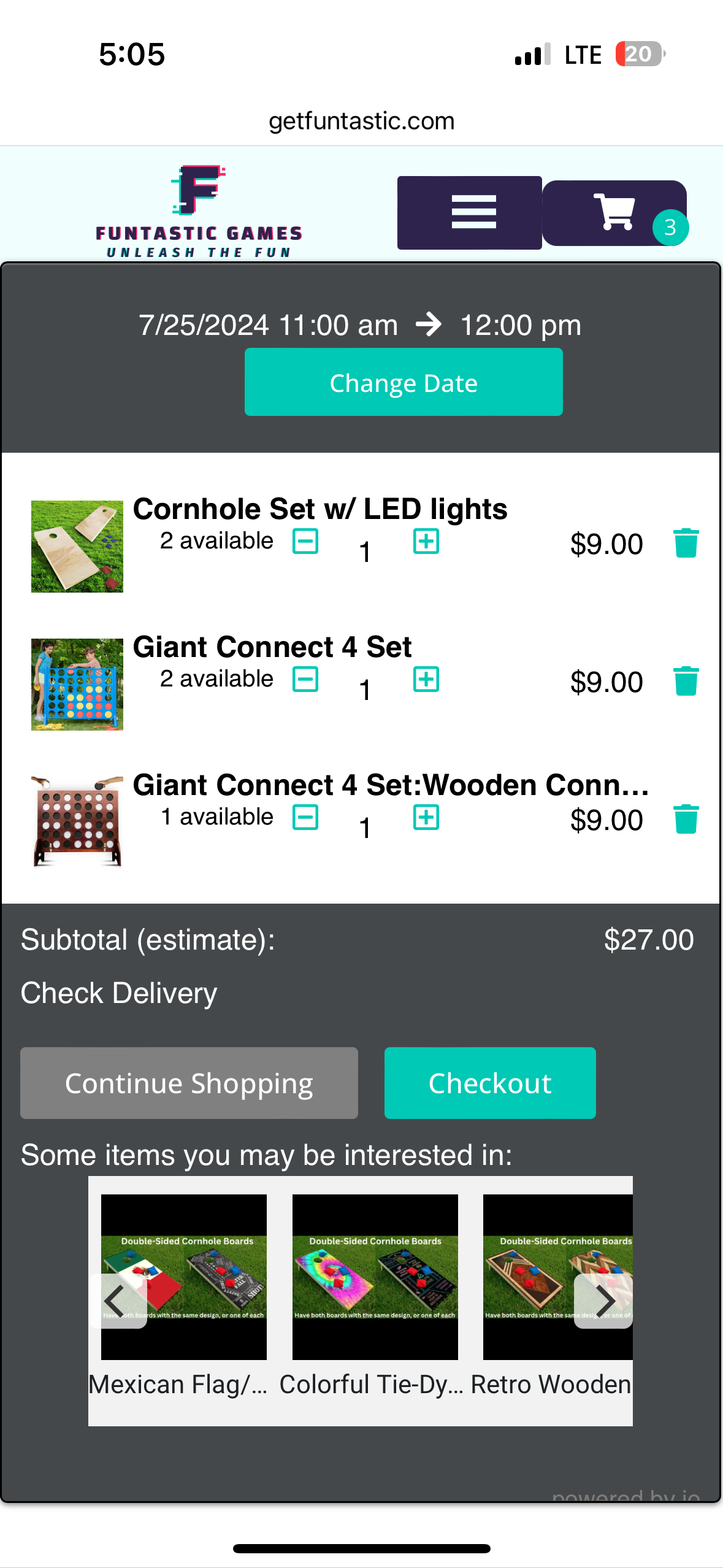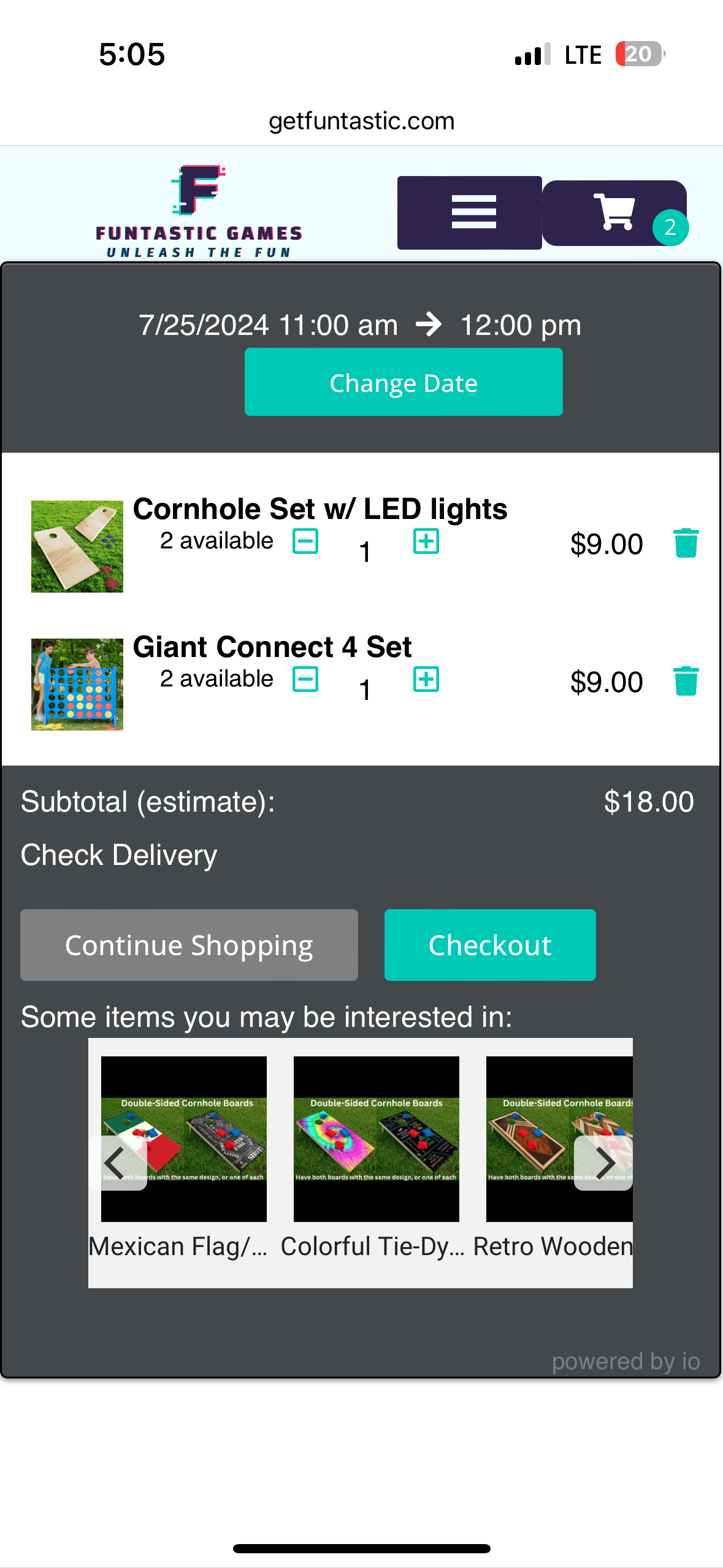 Example #1: adding cornhole set to the cart. In the second screenshot, no change was made, I only clicked “Checkout”