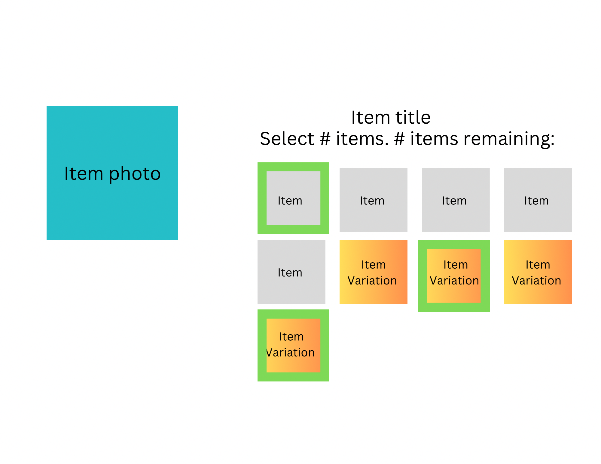 I’d suggest including all products AND THEIR VARIATIONS as tiles on a grid with photos and the full titles. Right now, photos are very small and titles get cut off which isn’t very user/friendly. I’d also like to see a selection box (or radio buttons, etc) that indicate when something has been selected.