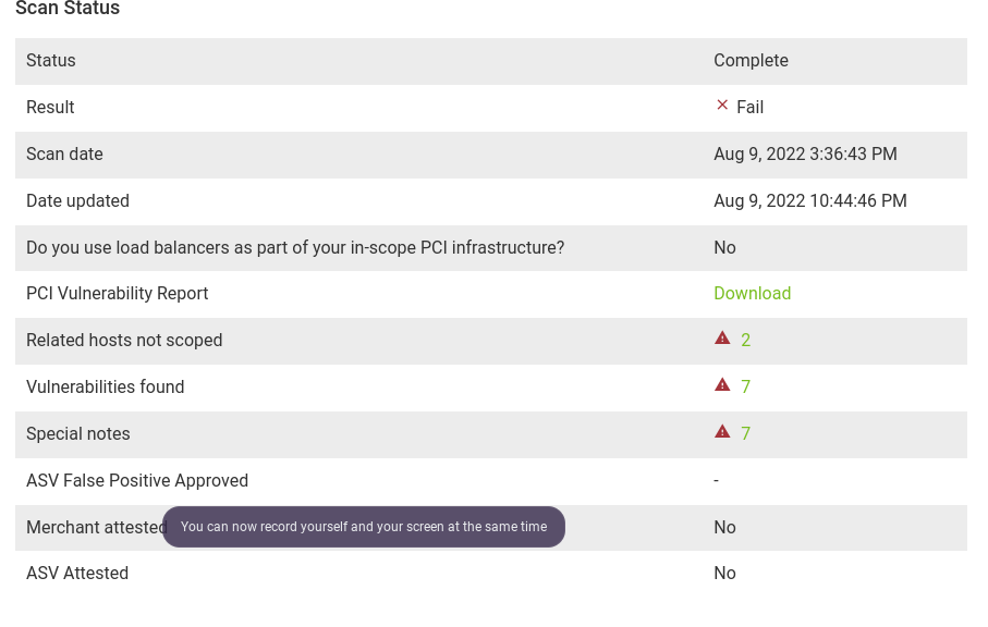 PCI Scan fail