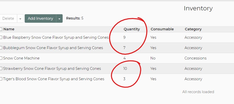 - I entered all of our concession supplies as consumable inventory. As far as I can tell, the quantities are correct.