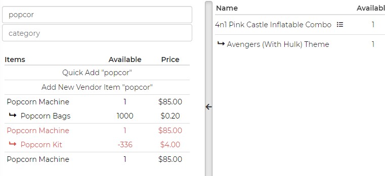 I'm very new to this software, so I went to add the items to a test order and I'm being shown negative amounts available for both concessions. I'm hoping someone can help me out with this and tell me what I did wrong.