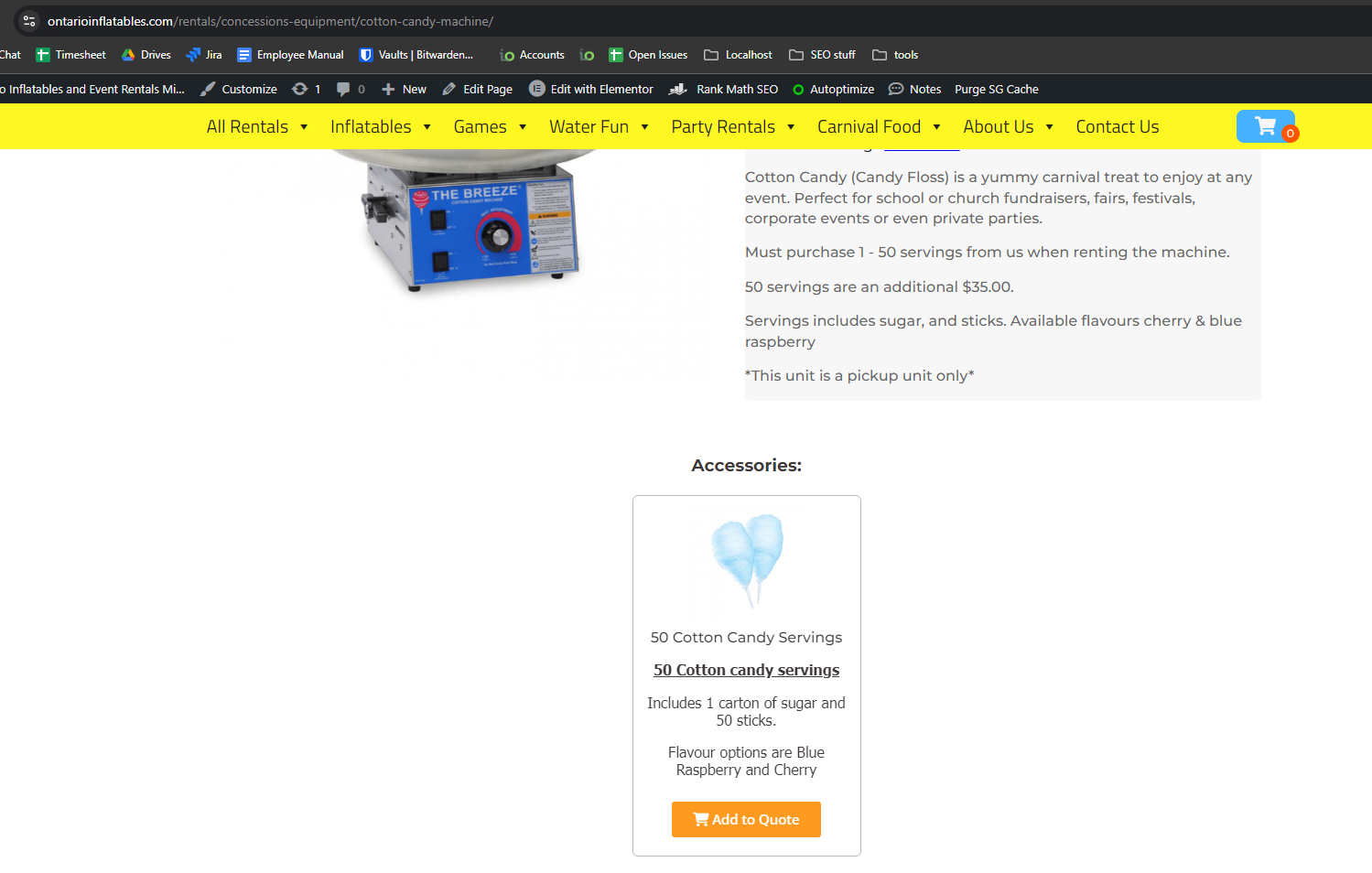 I have set this up for your ontarioinflatables site. I've included a picture and based on the picture, would recommend editing the descriptions of the affected accessories so they don't include the name in the description since the name is already displayed separately. If you would like me to display the description the same across all your live sites let me know!