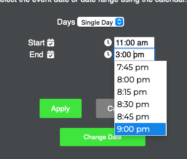 Latest booking set for 8pm, but dropdown allows 9pm selection?