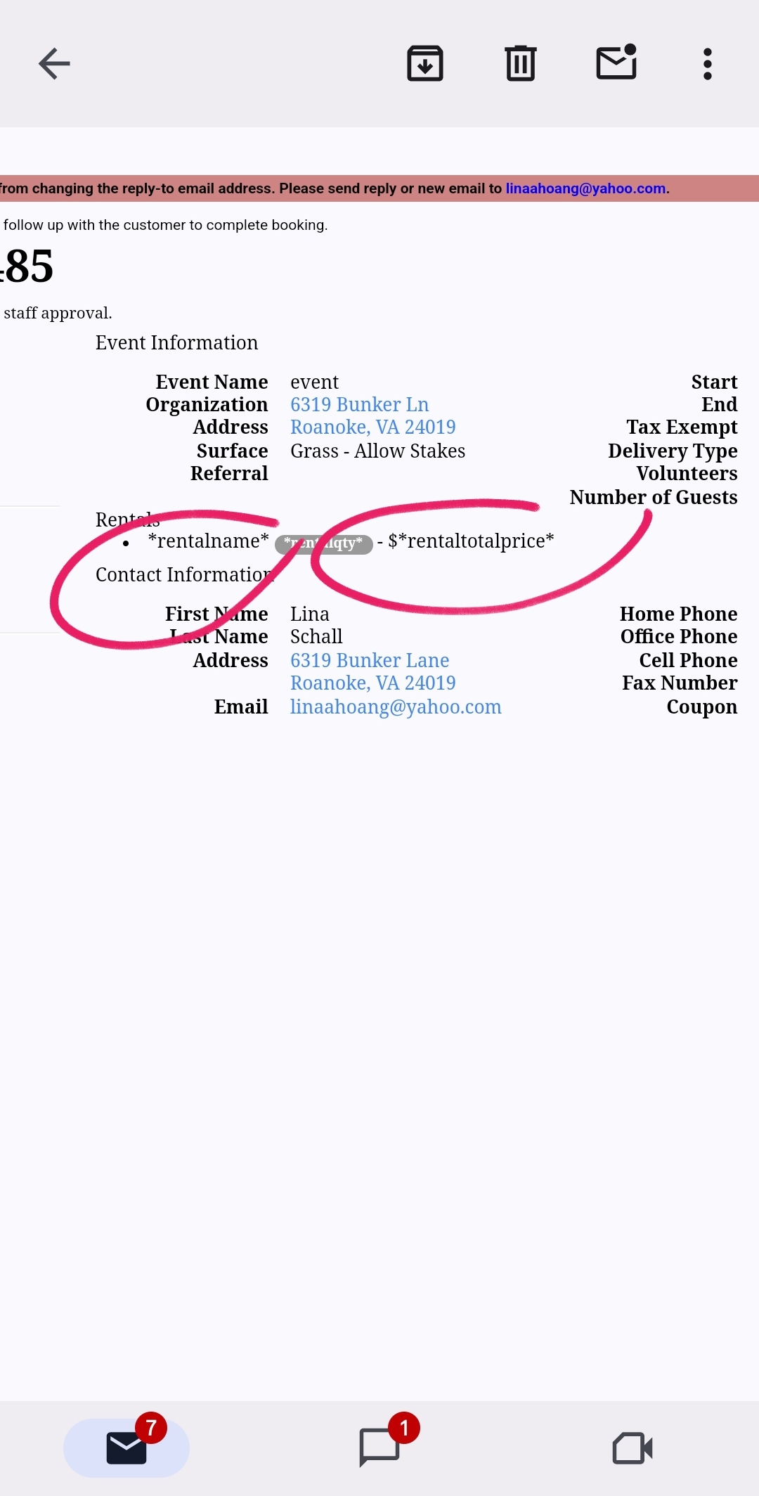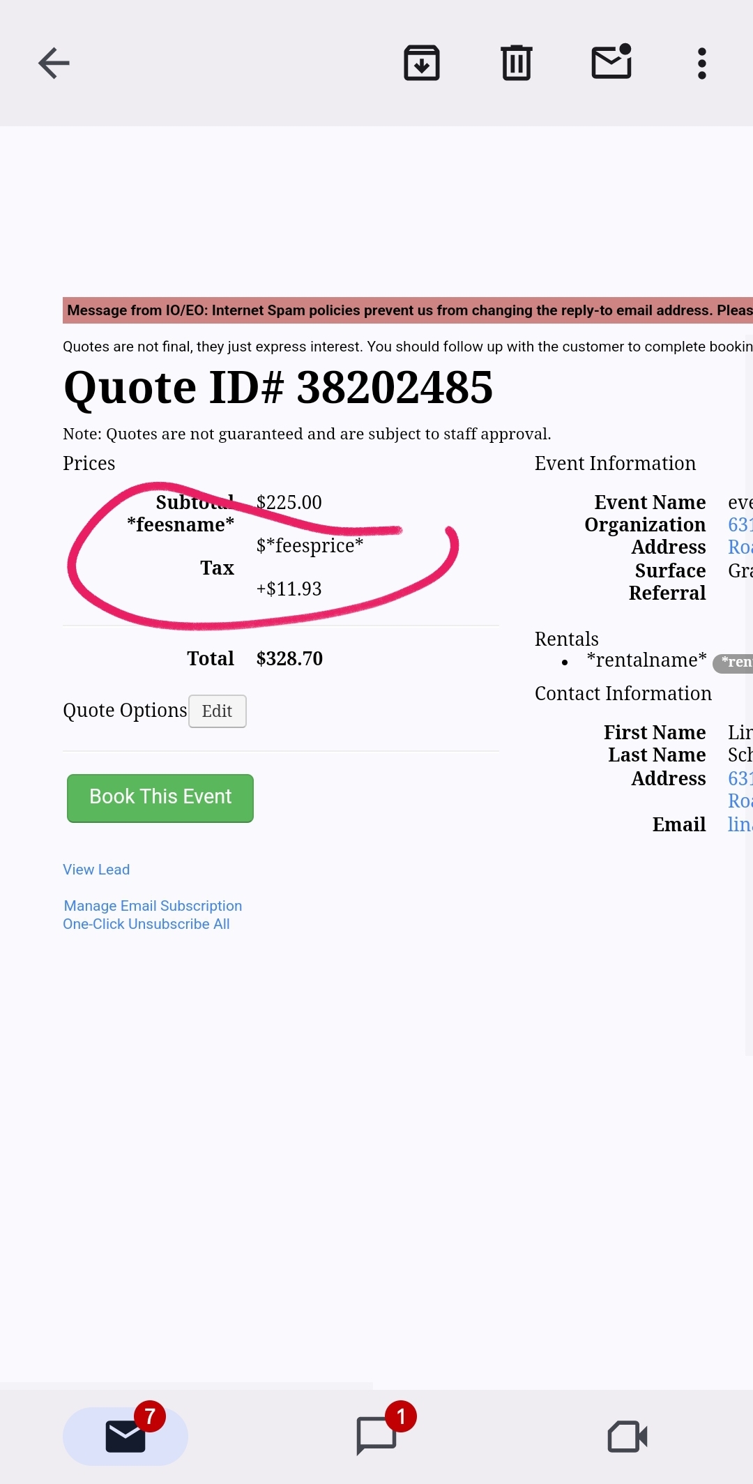 We are still have an issue with the variables not displaying the information on the quotes form. It is not displaying the rental name, fees name, feesname, rentaltotal price and more. See lead