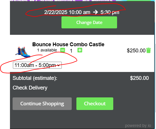 Ok sorry I must have missed before if you told me about changing the advanced settings. I went through each unit and unchecked the box for "time instead of quantity". To answer your question Yes I would like them removed from the cart as well as the other section. I would really prefer all time be removed, I prefer to discuss the time with the customer myself. These are the two places I'm now seeing times stamped.