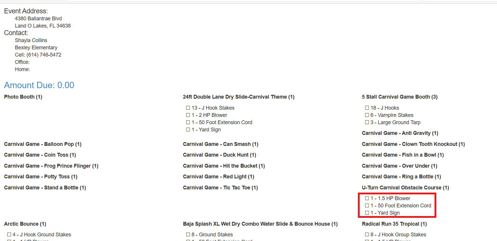 However, when I go to my packing list from the delivery planner, I am not seeing the blower, the tables, or the table cover in the packing list as seen below: