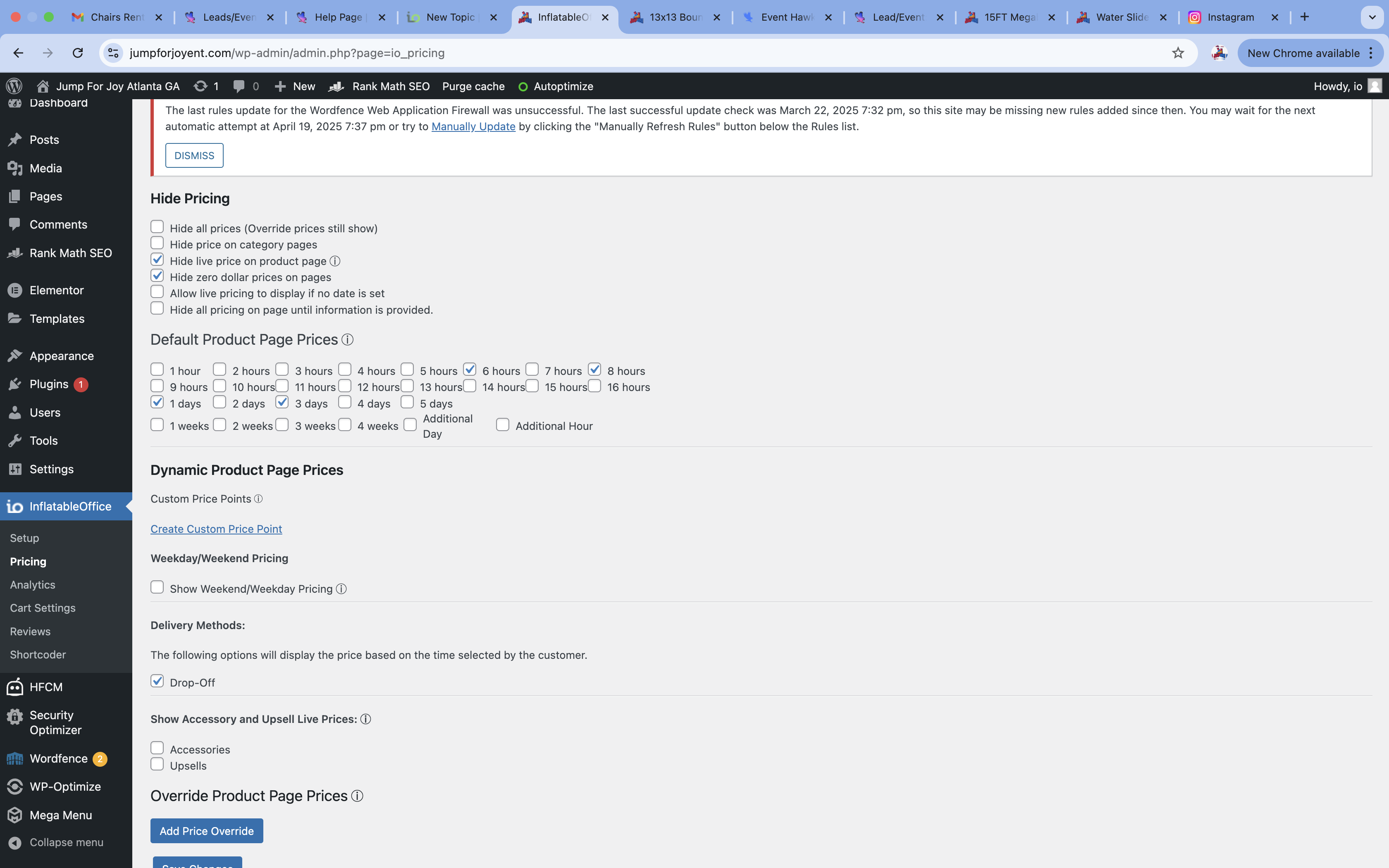 Issue: On our product pages, the pricing for rentals is incorrectly displayed. Specifically, the 6-hour rental price is showing up twice instead of displaying the options for 6 hours, 8 hours, 1 day, and 3 days. This occurred on 4/22/2025.