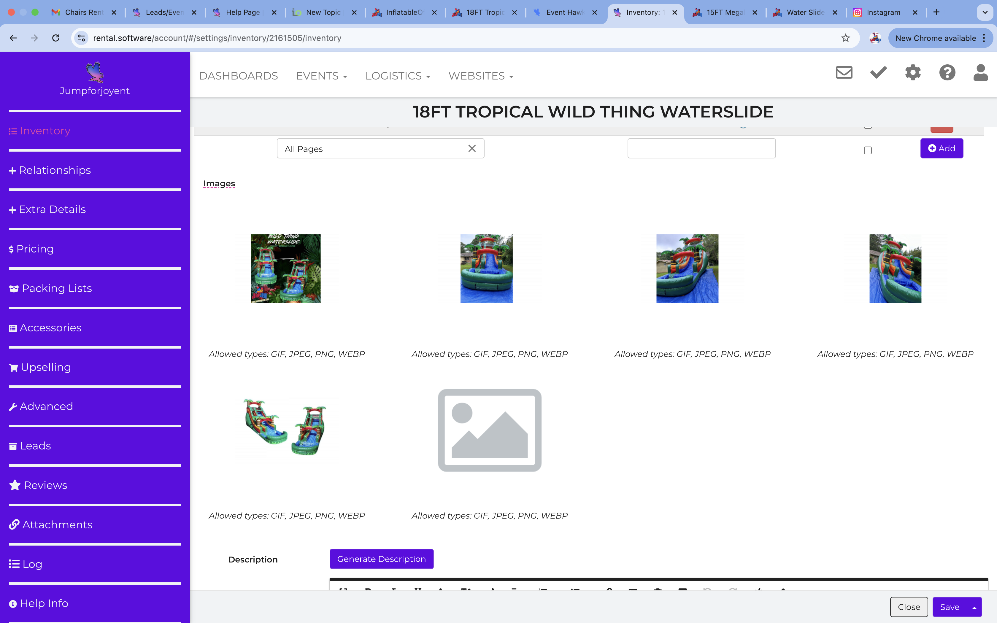 Issue: The main display picture for our “18 Ft Waterslide” is not appearing on the website. The image is correctly uploaded in our inventory management system and shows up there, but it does not display on the public-facing website.