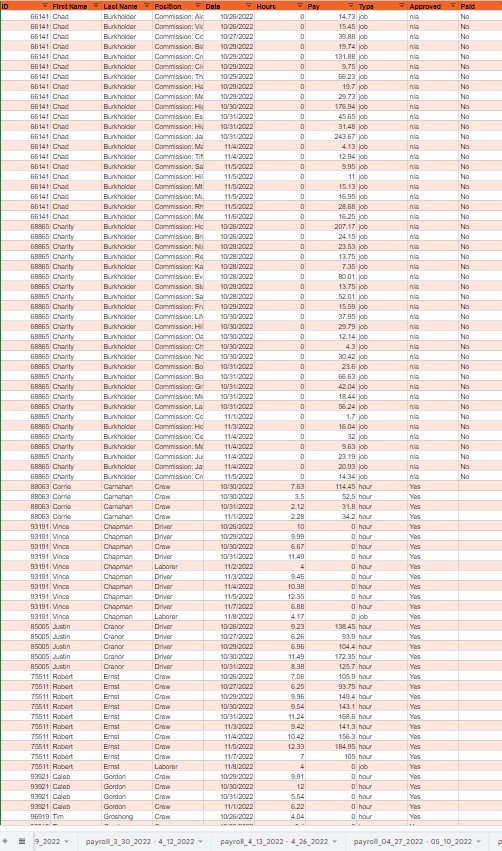 It's not automated. not exactly. Haven't spent the time on it being automated. I'm currently only running ~10 employees during peak season. I'm not 100% sure that it can even be automated outside of paying your payroll service to convert he sheet for you.