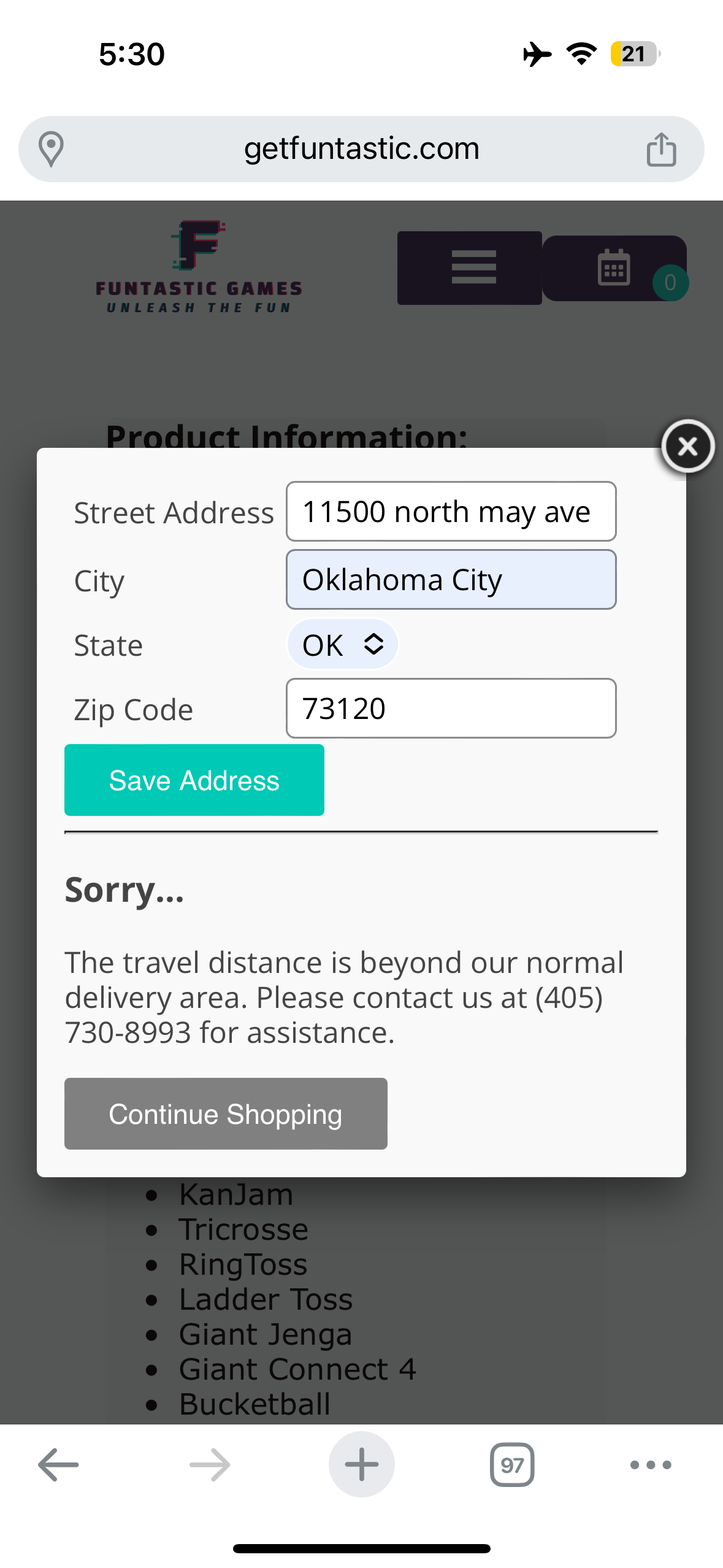 I have my distance set to deliver within 25 miles of my main zip code, 73162 when testing at checkout for the next zip code over (<5 miles away) I get this error message. This is not expected behavior. How can this help? I need my customers to be able to place orders with delivery without calling me. Also, a note to the product team, it might be worth getting an auto-populate field in for addresses for accuracy.