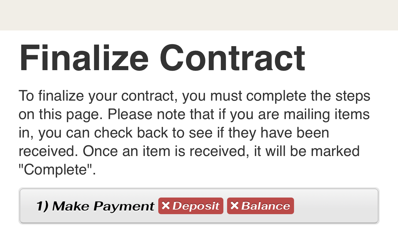 It looks like the "require payment first" box was checked under Settings-->Pages/Templates-->Contract Page. I have unchecked this for the Chateau location, so the customer can now sign with having to make a payment first.