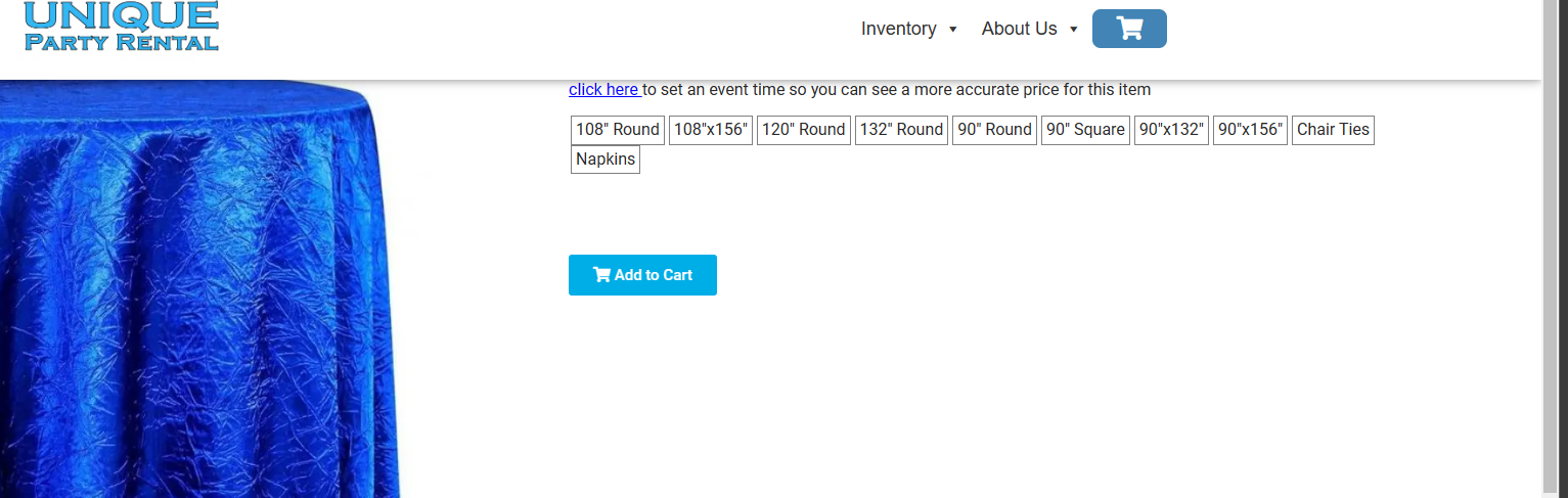 Ok so I see what you mean but they have their sizes set up as accessories and their fabrics set up as the main item this is the difference. Here are a few screenshots of their website 1 st one is all the fabrics then when you click on the fabric type you see the sizes in the next pic and it says to click here to set an event time to see accurate prices.
