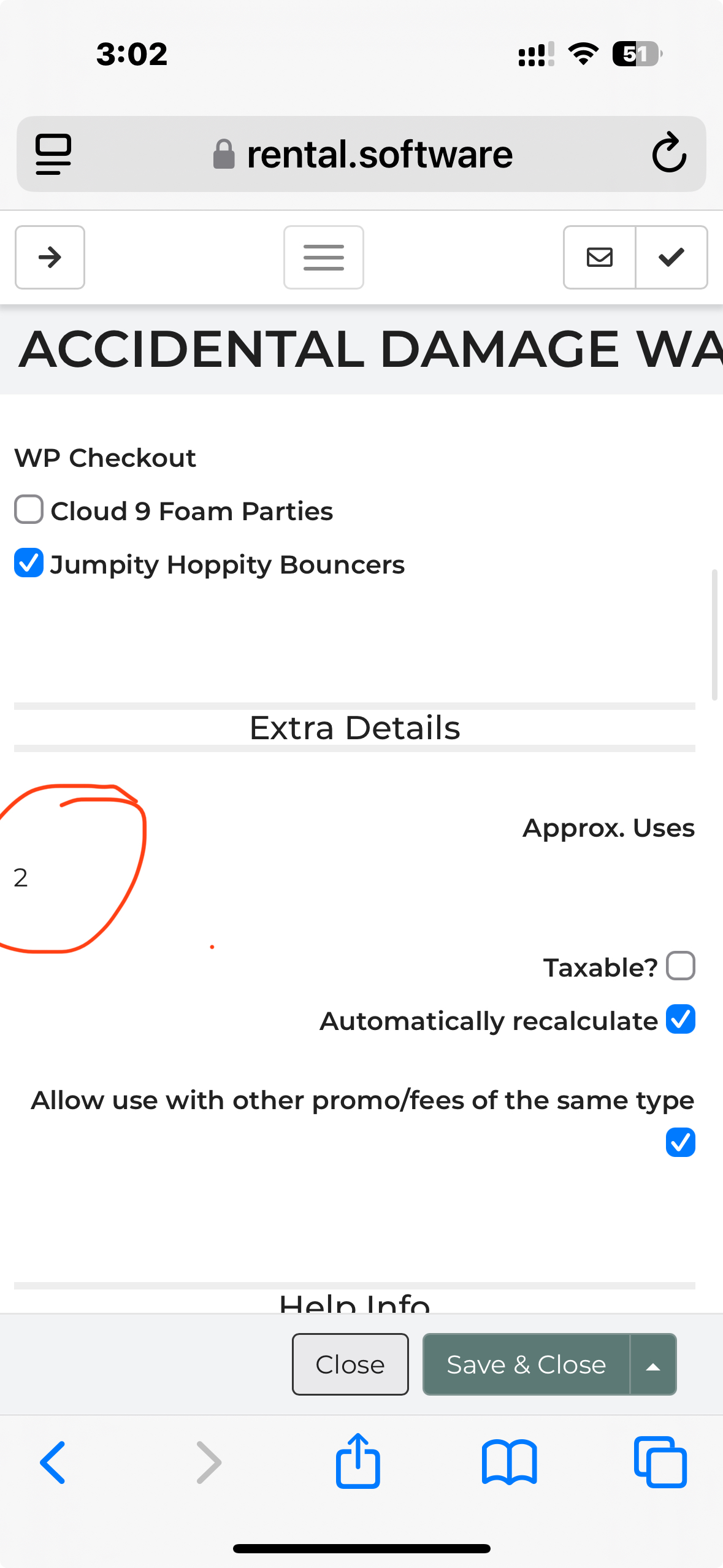 Whenever the damage waiver is selected, the invoice is showing two damage waiver fees. One of the lines says “ damage waiver” and the second line says “damage”, and they both are charging separate charges. I am not able to remove one or both of them. What is going on here?