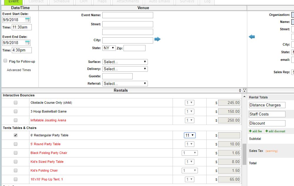 Then I have to subtract the number of chairs already booked manually for the system not to have a conflict on the rental.