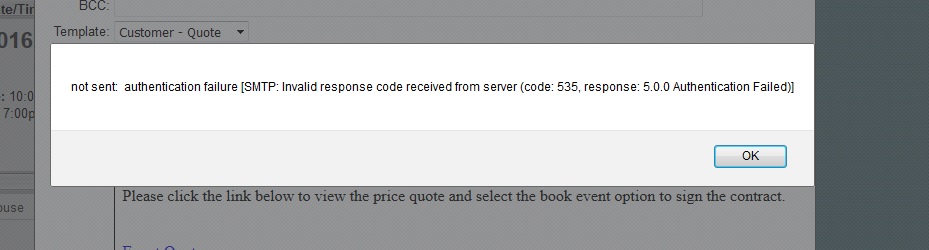 I set up another email address in my inflatable office account and changed the setting for my email account to reflect this. But it seems every other quote I send fails and gives me this error. I think its saying the email server is not allowing inflatable office to send an email. Any recommendations to resolve this. I changed the email preferences in inflatable office because customers weren't getting the quotes because they were going straight to their junk mail folders.