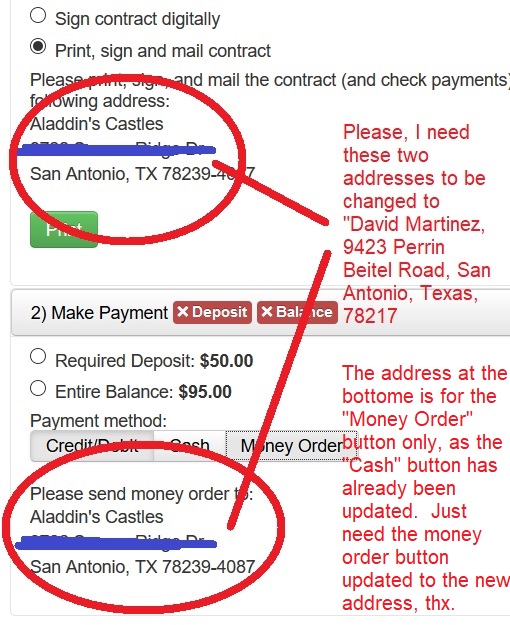 Change Address on Contracts Page (in two places)