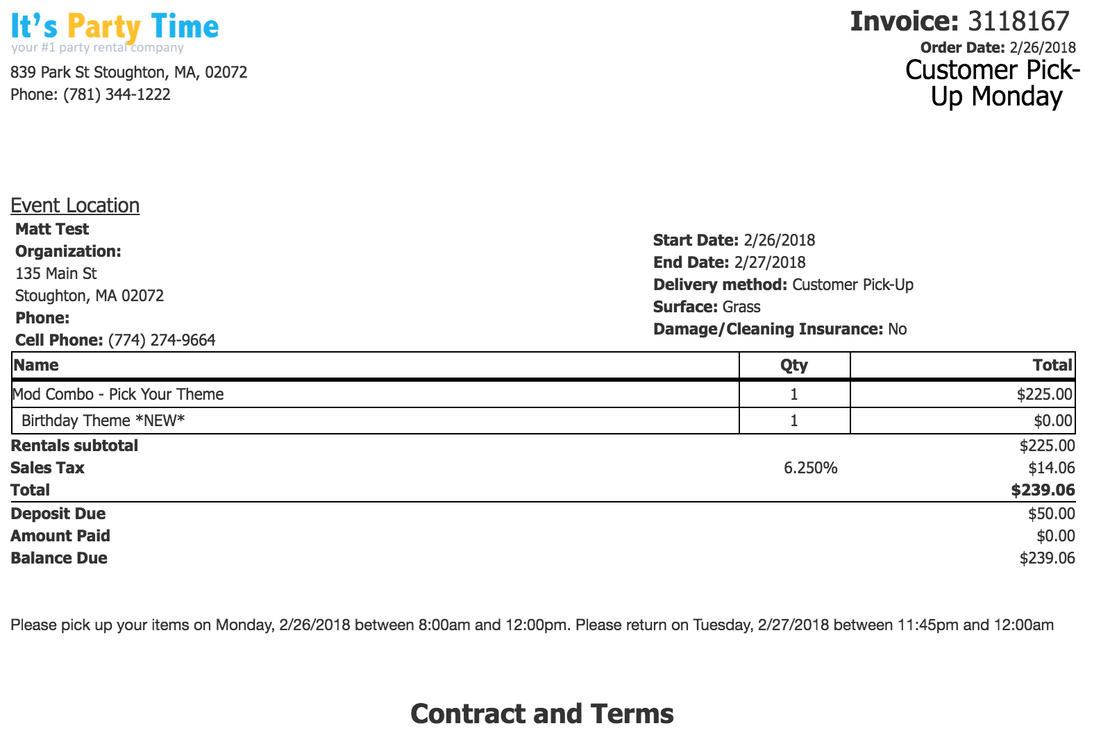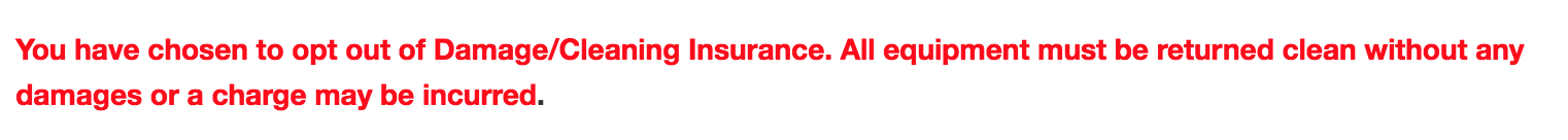 One last thing (sorry)... you helped us with a custom section on the contract a while back where it displays different text based on delivery type of the event. For the customer pick-up option, can we also display the following (under the current custom verbiage) for orders that are customer pick-up delivery type AND have chosen to opt out of insurance: "You have chosen to opt out of Damage/Cleaning Insurance. All equipment must be returned clean without any damages or a charge may be incurred"