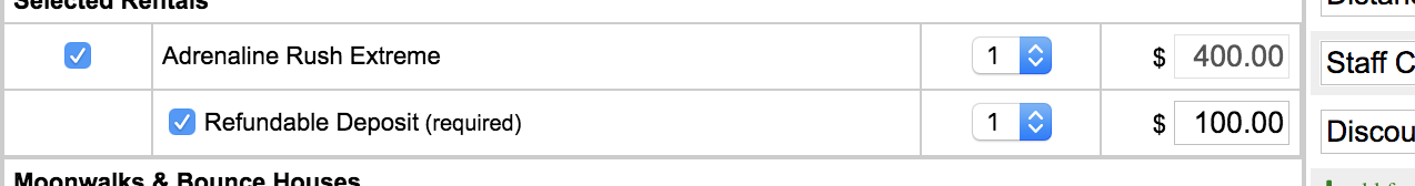 That said, we have a couple items that we'd like to charge a large security deposit (i.e. rental cost might be $200, but we ask for a $300 deposit), but get an error any time that happens.