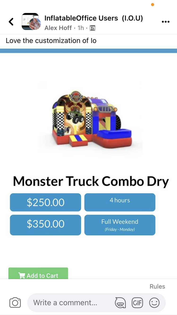 We want a similar look (boxes) but with three options. This would be for all inflatables except water slides.