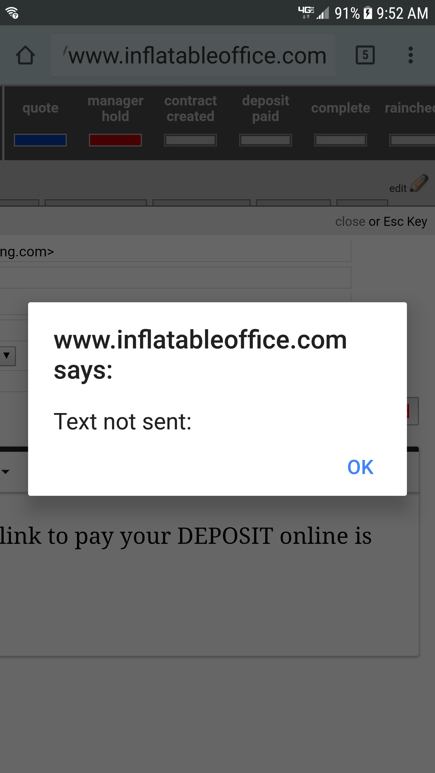 Trying to send a text "email", but I keep getting a pop-up error "text not sent" with an OK button