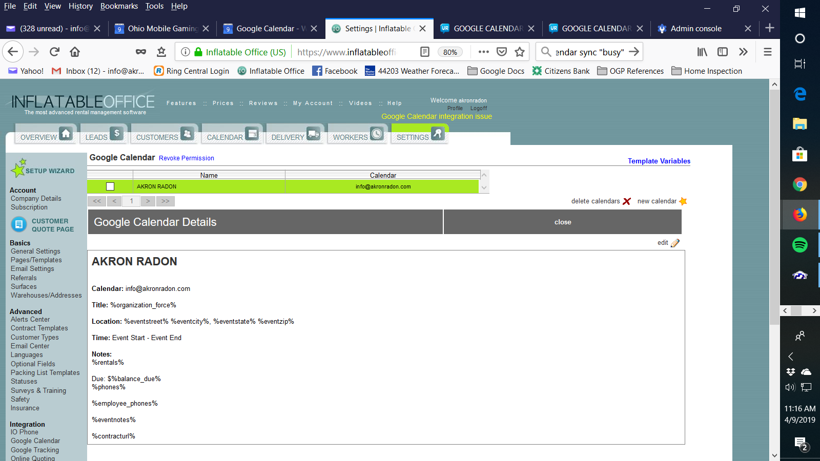GOOGLE CALENDAR INTEGRATION ISSUE
