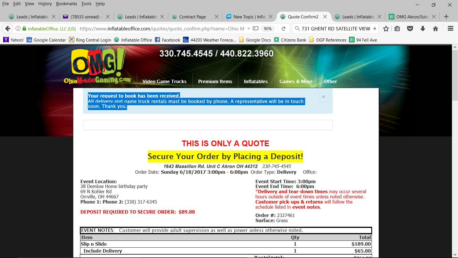 All delivery and game truck rentals must be booked by phone. A representative will be in touch soon. Thank you.TO: ALL DELIVERY ORDERS MUST BE PLACED BY PHONE. PLEASE CALL 330-745-4545 TO MAKE YOUR DEPOSIT.