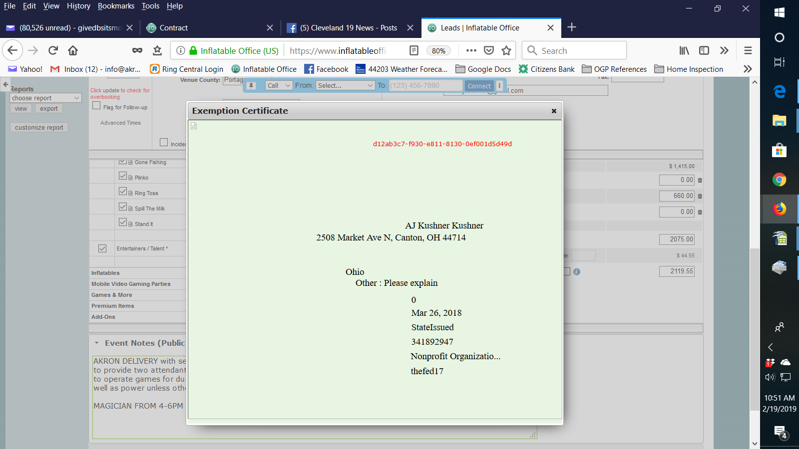 First, we noticed in the last month that all the graphics when trying to use an old Tax Exempt Cert don't show up. Screenshot attached. This makes it impossible to select an old one.