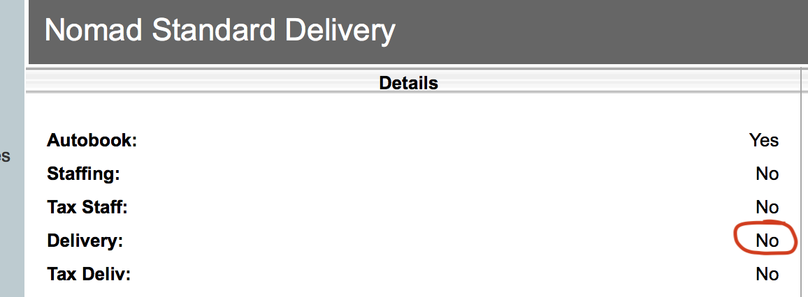 I cannot find lead 4306031 at all...Lead 4311045 has Nomad Standard Delivery. If you go to Settings-->Delivery Methods you will see this delivery type is set as NO (see screenshot)