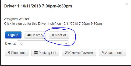 I see this "Meet At" button on the workers site (see attached). All it does is give employees directions to the warehouse. Is there a hidden feature here that I'm missing? I'd love to be able to designate shifts to meet at the warehouse or meet at the event site.